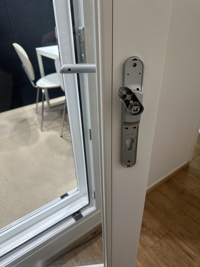 방음실문손잡이고장및 유리거꾸로 끼운 건