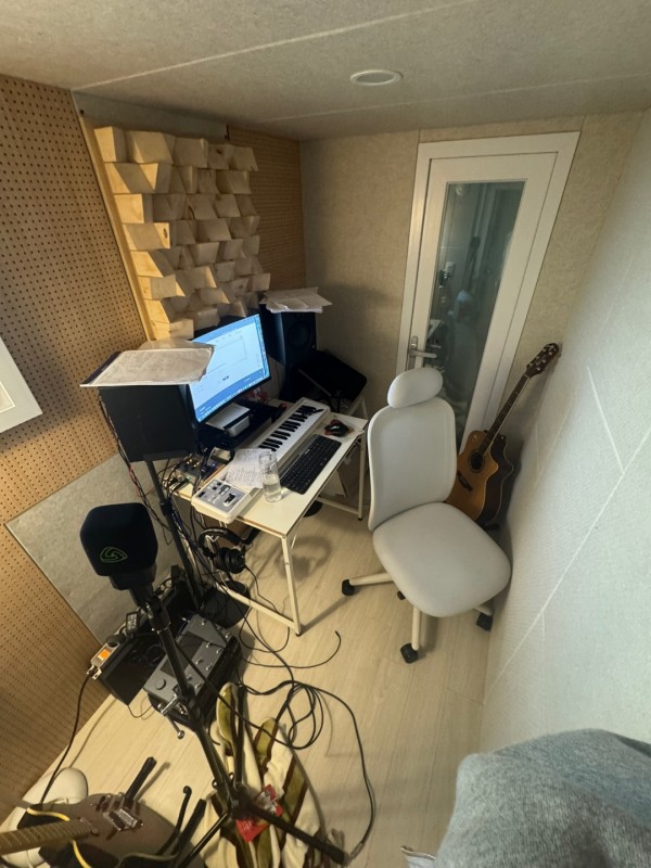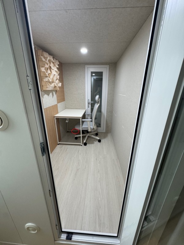 7. 제품 상태(사진필수) : 시스템도어 양짝(2개) / 시스템 창문 1개 / 이동식에어컨용 구멍타공 (폐쇄가능) / 강마루, 목재패널, 매립등 설치 / 사운드디퓨저 1개 /